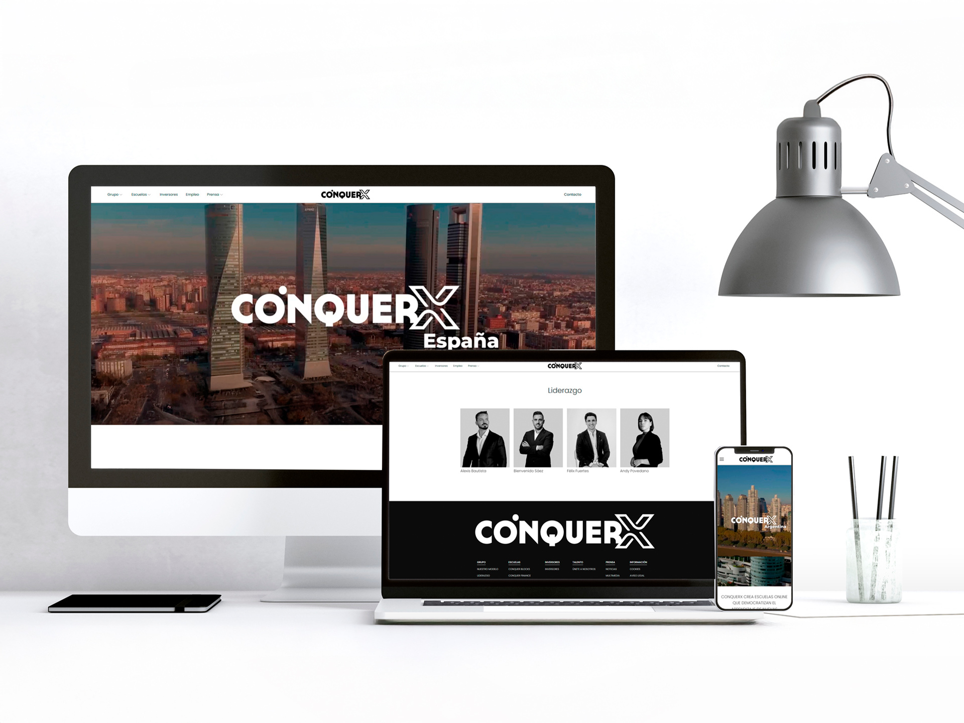 Para ConquerX, una empresa innovadora dedicada a la formación en tecnología, educación financiera y enseñanza de idiomas, desarrollé un conjunto de sitios web modernos utilizando Webflow, pensados para comunicar con claridad y fuerza su enfoque multidisciplinar.